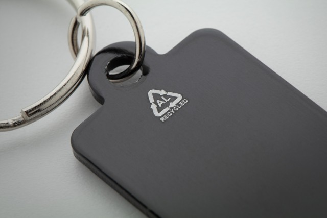Přívěšek na klíče z recyklovaného hliníku s mincí do nákupního vozíku.