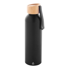 Láhev z recyklovaného hliníku s bambusovým víčkem a silikonovým popruhem v odpovídající barvě, 600 ml.