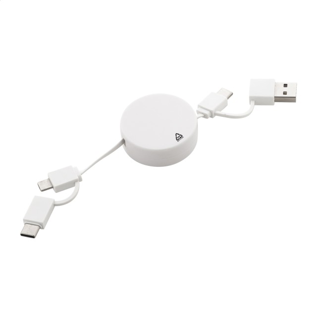 Teleskopický nabíjecí kabel USB z recyklovaného ABS s konektory micro USB, USB-C a Lightning. Se vstupy USB a USB-C.