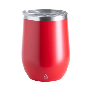 Dvoustěnný termo hrnek z recyklované nerezové oceli s plastovým víčkem na pití. 350 ml.