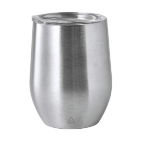 Dvoustěnný termo hrnek z recyklované nerezové oceli s plastovým víčkem na pití. 350 ml.