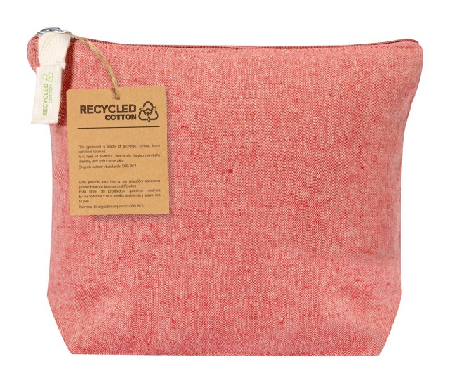 Kosmetická taštička na zip z recyklované bavlny. S výrazným štítkem z recyklované bavlny.
