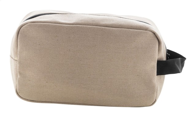 Kosmetická taštička z recyklovaného plátna se dvěma přihrádkami na zip a rukojetí. 70% recyklovaná bavlna a 30% RPET polyester. S výrazným štítkem z recyklované bavlny.