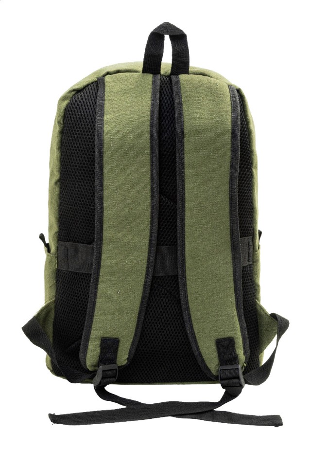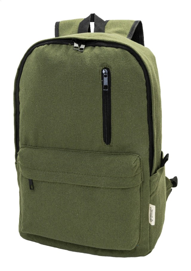 Recyklovaný plátěný batoh s hlavní přihrádkou na zip, polstrovanou přihrádkou na notebook (15"), 2 předními kapsami na zip, bočními kapsami, popruhem na kolečkách, polstrovanými zády a ramenními popruhy. 70% recyklované bavlny a 30% RPET polyesteru. S výrazným štítkem recyklované bavlny.