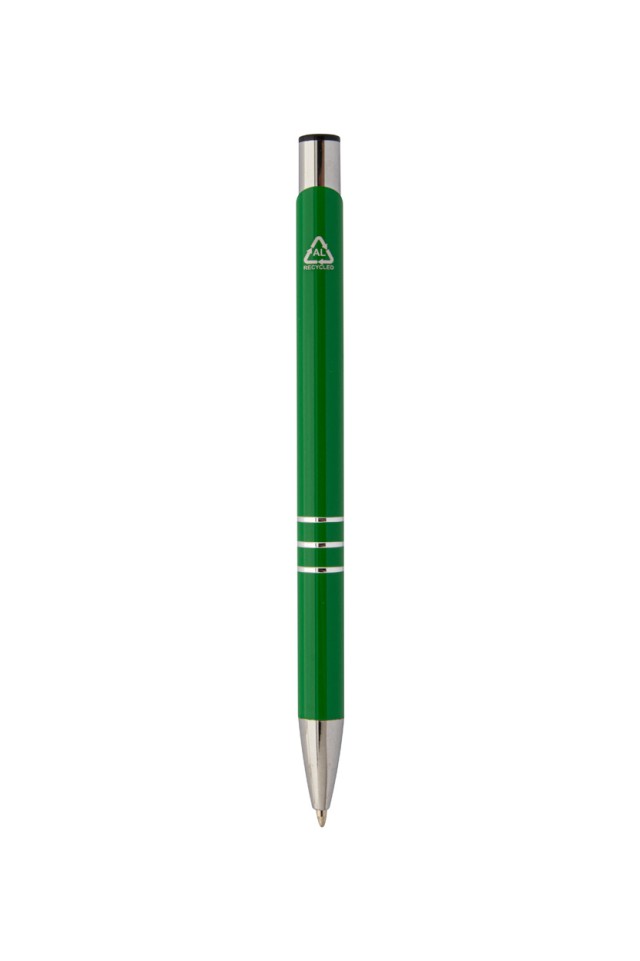 Kuličkové pero z recyklovaného hliníku s modrou náplní.