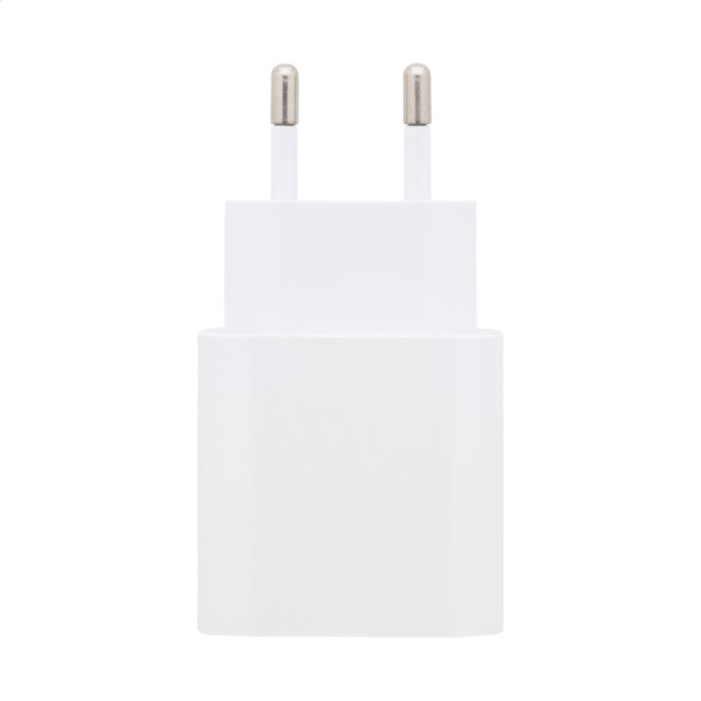 Recyklovaná rychlonabíjecí USB nástěnná nabíječka z ABS 1 port USB-C. Podporuje technologii rychlého nabíjení (PD20W / QC3.0). S 2-pólovou evropskou zástrčkou.