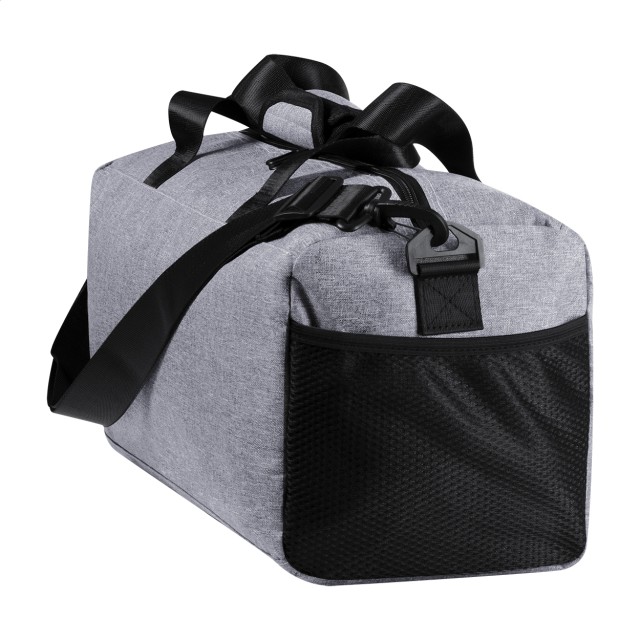 Sportovní taška na zip, boční kapsy ze síťoviny a nastavitelný ramenní popruh, polyester 600D.