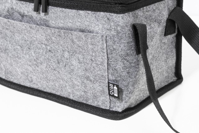 Chladicí taška na zip z RPET plsti s hliníkovým polstrováním, přední kapsou a bočními rukojeťmi. S výrazným štítkem RPET.