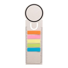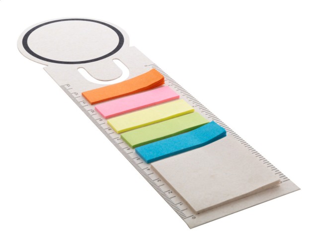 Záložka a pravítko z recyklovaného kartonu na mléko s 15 lepicími papírky a 75 značkovači stránek (v 5 různých barvách).