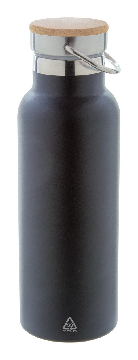 Dvoustěnná vakuově izolovaná termoska z recyklované nerezové oceli s bambusovým víčkem. 500 ml.
