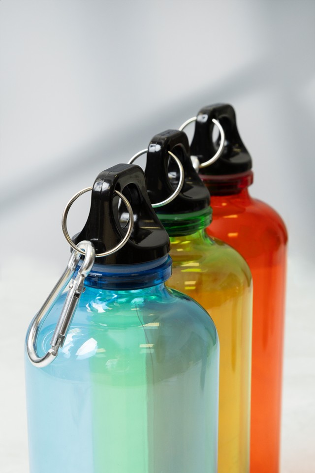 RPET láhev s hliníkovou karabinou, 600 ml. Bez BPA. Nevhodné pro sycené nápoje.
