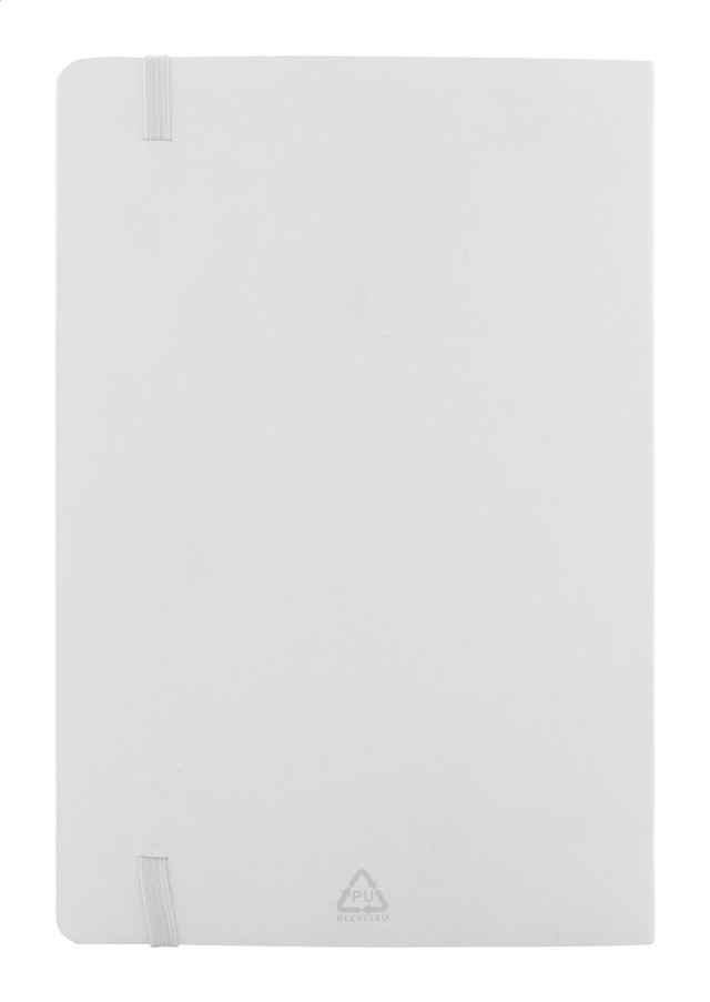 Blok A5 z recyklované PU kůže s měkkou vazbou s 80 linkovanými listy z recyklovaného papíru. Se záložkou v odpovídající barvě a gumičkou.