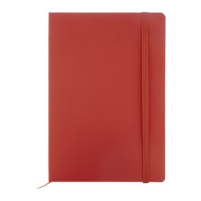 Blok A5 z recyklované PU kůže s měkkou vazbou s 80 linkovanými listy z recyklovaného papíru. Se záložkou v odpovídající barvě a gumičkou.