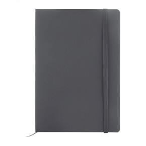 Blok A5 z recyklované PU kůže s měkkou vazbou s 80 linkovanými listy z recyklovaného papíru. Se záložkou v odpovídající barvě a gumičkou.
