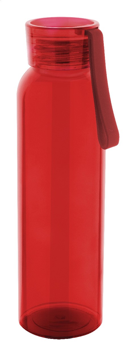 Láhev z recyklovaného skla s barevně odpovídajícím PP víčkem a silikonovým popruhem, 500 ml. Nevhodné pro sycené nápoje.