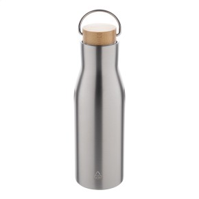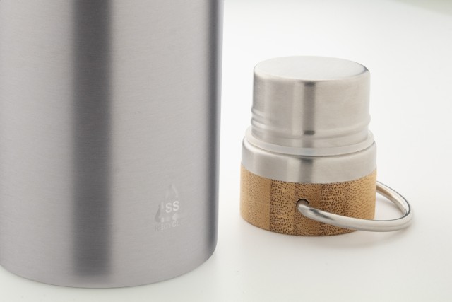 Dvoustěnná nerezová termoska z recyklované nerezové oceli s bambusovým víkem, 500 ml.