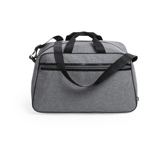 Sportovní taška RPET se 2 kapsami na zip, nastavitelným popruhem přes rameno a podšívkou z PVC. S výrazným štítkem RPET. 600D RPET polyester.