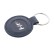 Kulatý přívěsek na klíče z recyklované PU kůže s kovovým kroužkem a nerezovou destičkou s logem a pogumovanou úpravou. Se speciálním povrchem pro zrcadlové laserové gravírování.