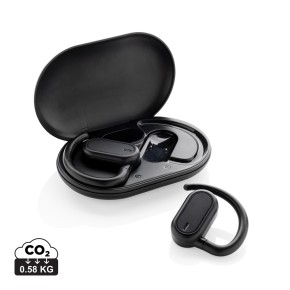 Bezdrátová sluchátka s háčkem za ucho jsou vyrobené z recyklovaného ABS s certifikací RCS. Díky unikátnímu designu jsou sluchátka ideální pro celodenní nošení. Sluchátka se nezasouvají do ucha, ale nosí na uchu, což vám umožňuje slyšet okolí a zároveň poslouchat hudbu. Celkový recyklovaný obsah: 58% na základě celkové hmotnosti položky. Certifikace RCS zajišťuje kompletně certifikovaný dodavatelský řetězec recyklovaných materiálů. Dokonale padnoucí sluchátka mají baterii s kapacitou 30 mAh a lze je znovu nabít v nabíjecím pouzdře s kapacitou 200 mAh během 1,5 hodiny. S funkcí automatického párování je snadno spárujete s mobilním zařízením. Doba přehrávání při střední hlasitosti přibližně 5 hodin. S BT 5.3 pro optimální připojení. Včetně recyklovaného nabíjecího kabelu TPE s certifikací RCS. Baleno v kraftovém obalu FSC® mix. Produkt a příslušenství 100% bez PVC.