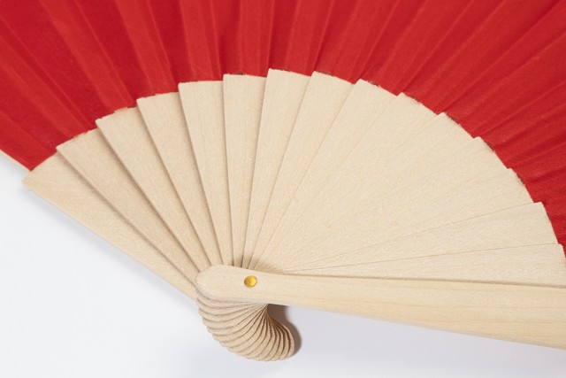 Vějíř z RPET polyesteru s dřevěnými žebry.