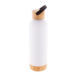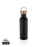 Moderní nerezová lahev s bambusovým uzávěrem - černá