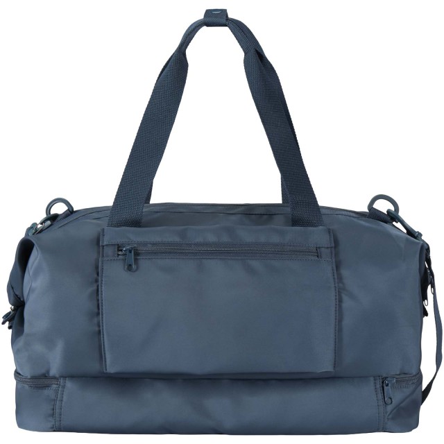 Cestovní taška Trip Aware™ z recyklovaného materiálu je všestranný a prostorný společník, ideální pro krátké výlety a pro snadné přenášení všech nezbytností. Je vyrobena z odolného keprového polyesteru 290D s měkkým pleteným podkladem a podšívkou z RPET 210D/PU a navržena pro praktické použití a pohodlí. Hlavní přihrádka obsahuje velkou kapsu na zip s vyhrazeným úložným prostorem na pas, pera a klíčenky, spolu se dvěma vnitřními zasouvacími kapsami a dvěma držáky na lahve s vodou. Samostatná spodní přihrádka se otevírá ve tvaru mušle, ideální pro uložení bot nebo oddělení vybavení. Každá taška je také dodávána s indikátorem Aware™ . Tato inovativní funkce umožňuje uživatelům sledovat původ a cestu jejich položky prostřednictvím QR kódu, čímž zvyšuje transparentnost v dodavatelském řetězci a podporuje pevnější propojení mezi produktem a jeho výrobním procesem. Objemová kapacita: 42 litrů.
