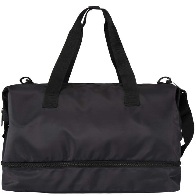 Cestovní taška Trip Aware™ z recyklovaného materiálu je všestranný a prostorný společník, ideální pro krátké výlety a pro snadné přenášení všech nezbytností. Je vyrobena z odolného keprového polyesteru 290D s měkkým pleteným podkladem a podšívkou z RPET 210D/PU a navržena pro praktické použití a pohodlí. Hlavní přihrádka obsahuje velkou kapsu na zip s vyhrazeným úložným prostorem na pas, pera a klíčenky, spolu se dvěma vnitřními zasouvacími kapsami a dvěma držáky na lahve s vodou. Samostatná spodní přihrádka se otevírá ve tvaru mušle, ideální pro uložení bot nebo oddělení vybavení. Každá taška je také dodávána s indikátorem Aware™ . Tato inovativní funkce umožňuje uživatelům sledovat původ a cestu jejich položky prostřednictvím QR kódu, čímž zvyšuje transparentnost v dodavatelském řetězci a podporuje pevnější propojení mezi produktem a jeho výrobním procesem. Objemová kapacita: 42 litrů.