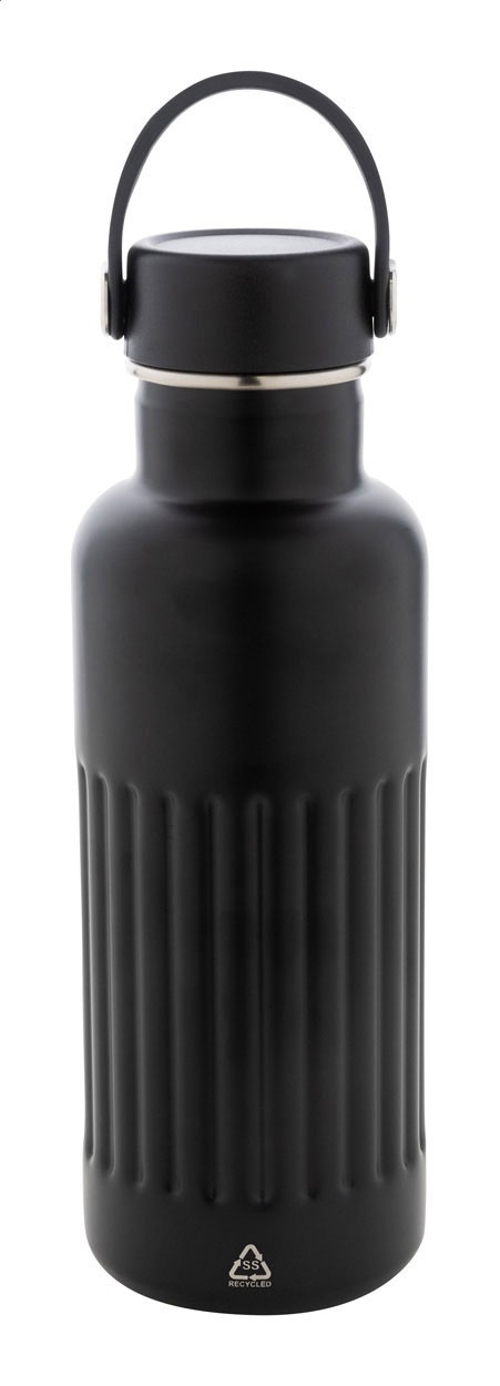 Dvoustěnná vakuově izolovaná láhev z recyklované nerezové oceli s PP plastovým přepravním víčkem. 500 ml.