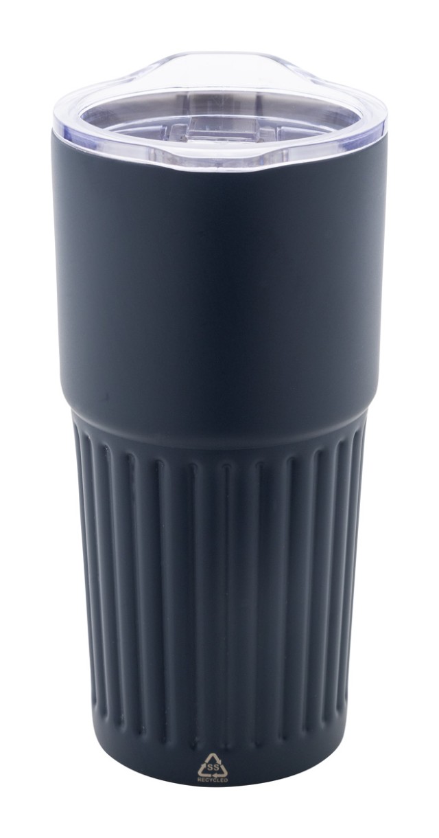 Dvoustěnný termo hrnek z recyklované nerezové oceli s víčkem na pití z ABS plastu. 600 ml.