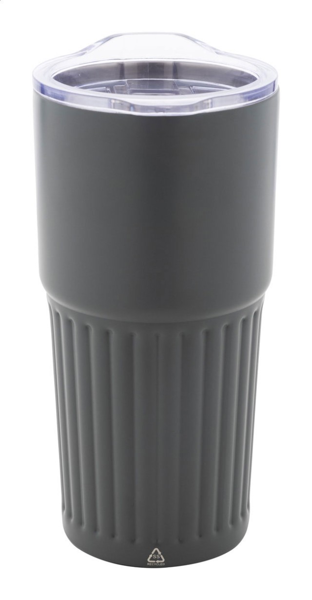 Dvoustěnný termo hrnek z recyklované nerezové oceli s víčkem na pití z ABS plastu. 600 ml.