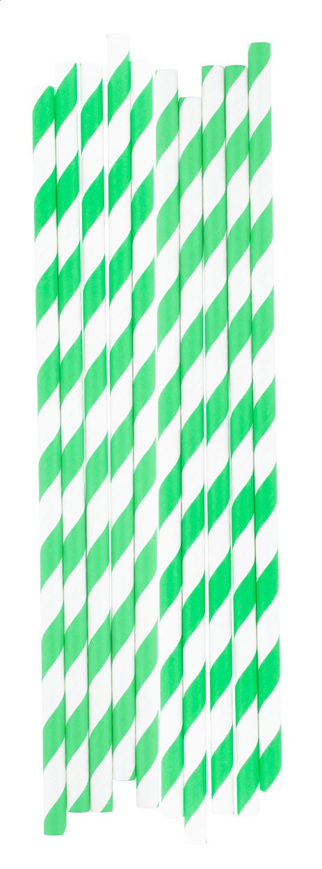10 ks papírových brček na pití se vzorem proužků, v krabičce z kraftového papíru.
