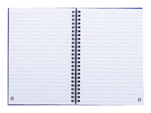 Spirálový blok A5 s 80 linkovanými listy z recyklovaného papíru.