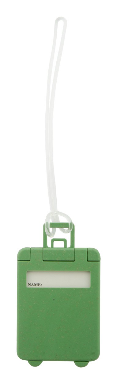 Ekologická plastová visačka na zavazadla z pšeničné slámy ve tvaru kufru, s elastickým páskem.
