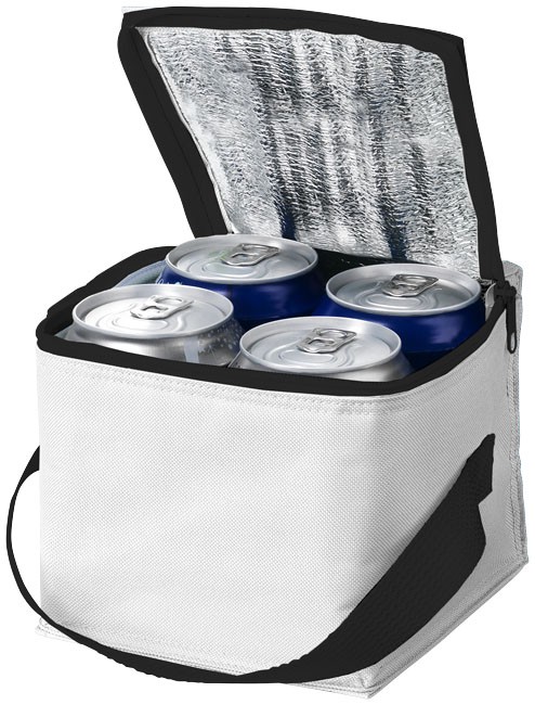 Termotaška Tromso na 4 plechovky. Termotaška na 4 plechovky s hlavním prostorem na zip a s uchem ze splétaného pásku. Polyester 600D.