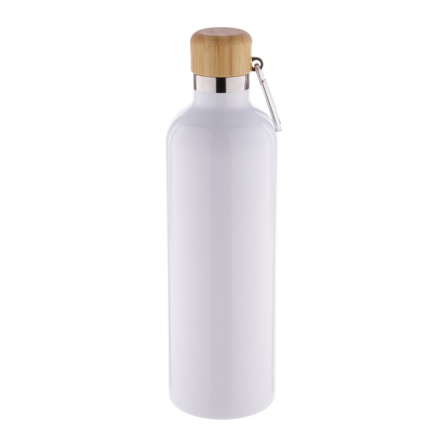 Dvoustěnná nerezová termoska s bambusovým uzávěrem a karabinkou, 500 ml.