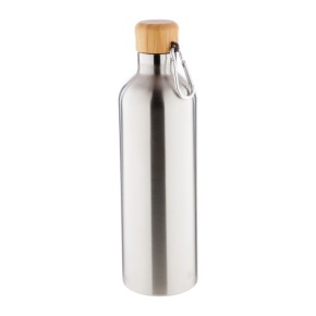 Dvoustěnná nerezová termoska s bambusovým uzávěrem a karabinkou, 500 ml.