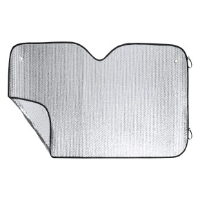 Hliníkové sluneční clony ve stříbrné metalické barvě s černým lemováním a 2 přísavkami.
