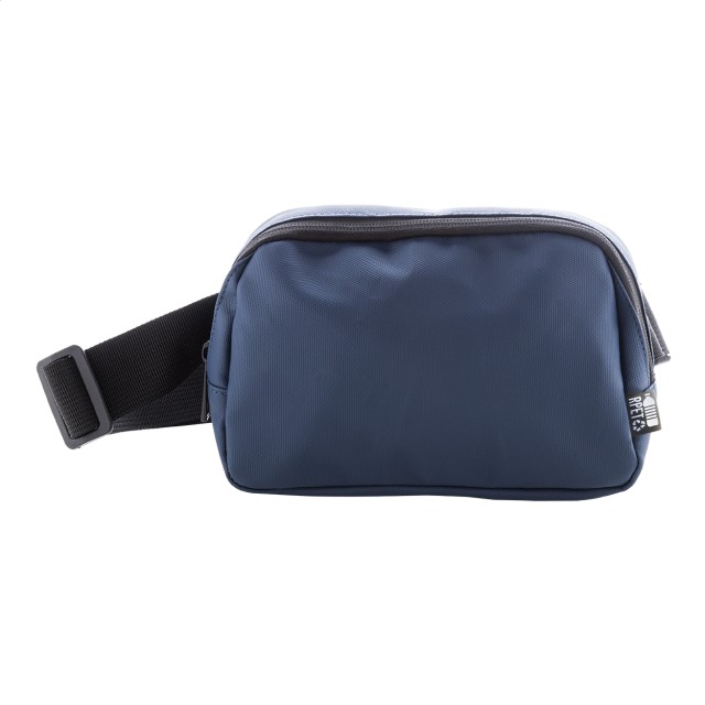 Vodotěsná RPET ledvinka se 2 přihrádkami na zip, síťovanými vnitřními kapsami s organizérem a nastavitelným popruhem. Polyester 600D RPET potažený PU, s výrazným štítkem RPET.
