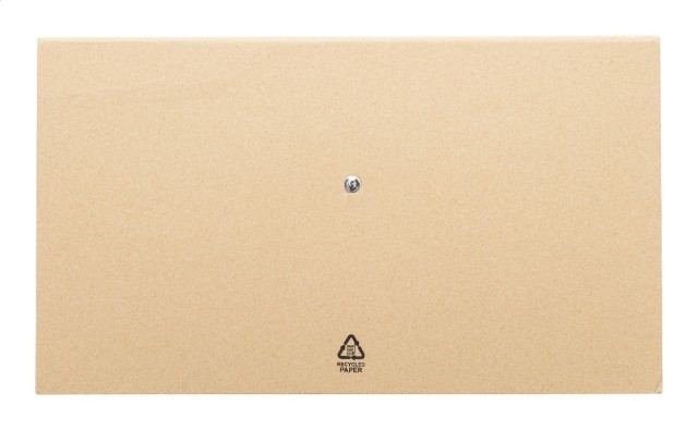 Stolní plánovač z recyklovaného papíru s 50 nedatovanými týdenními plánovacími listy, 100 samolepicími papírky (ve 4 barvách) a 125 značkovači stránek (v 5 barvách). Včetně kuličkového pera z recyklovaného papíru s modrou náplní.