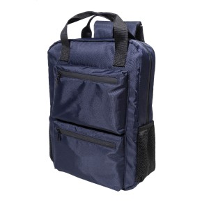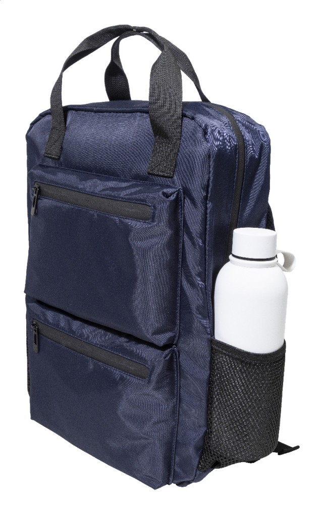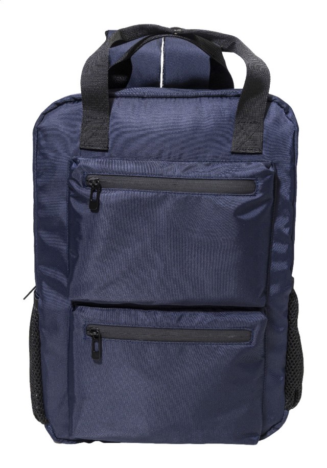 Batoh z RPET s přihrádkou na zip, 2 předními kapsami na zip, polstrovanou přihrádkou na notebook (15") a bočními síťovanými kapsami. S polstrovanými zády a ramenními popruhy, kapsou proti krádeži a popruhem na kolečkách. RPET keprový polyester s výrazným štítkem RPET.