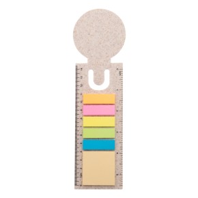 Ekologická plastová záložka a pravítko z pšeničné slámy s 25 lepicími papírky a 125 popisovači stránek (v 5 různých barvách).
