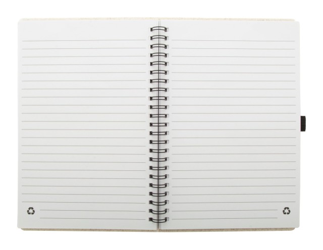 Ekologický spirálový blok A5 potažený plastem z pšeničné slámy se 70 linkovanými listy z recyklovaného papíru a držákem na pero.