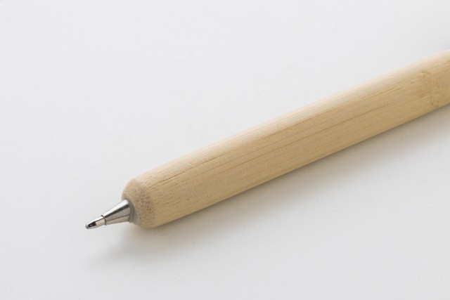 Bambusové kuličkové pero svánočním motivem nahoře. S modrou náplní.