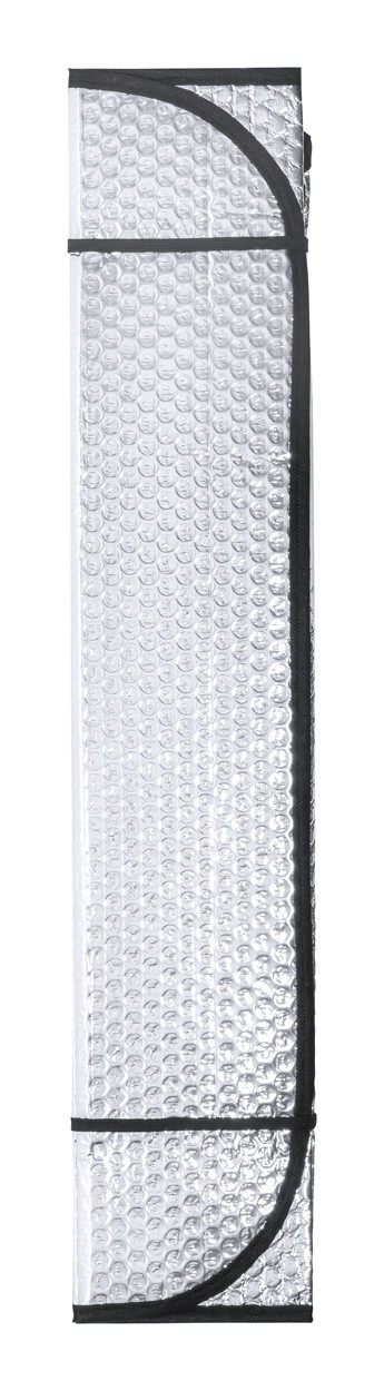 Hliníková sluneční clona na čelní sklo automobilu s pružnými pásky pro skládání. MOQ: násobky 100 ks.
