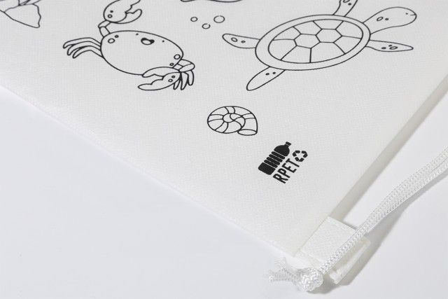 Vak se stahovací šňůrkou pro děti z netkané RPET tkaniny s 5 voskovkami na vybarvení.